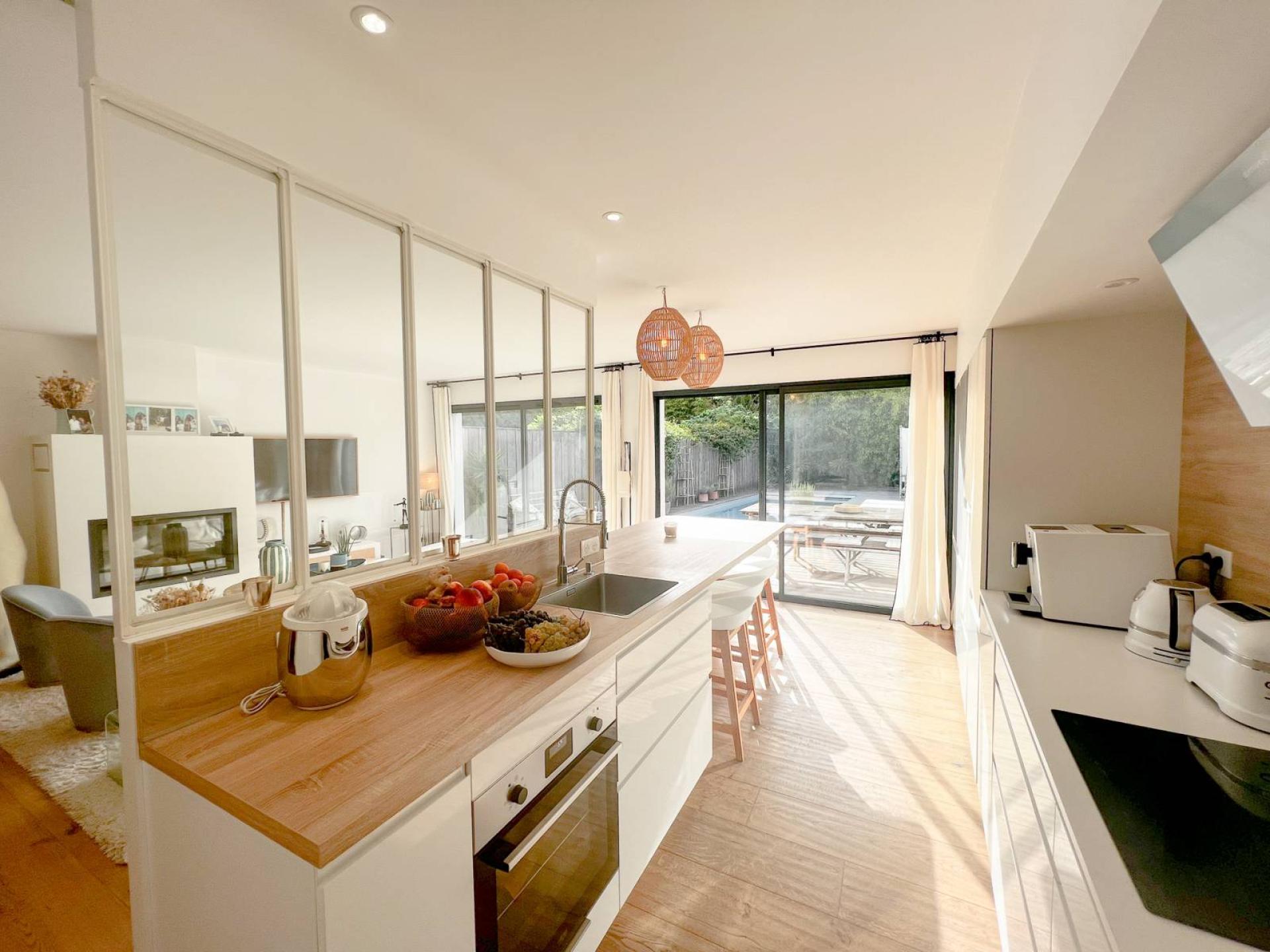 Ce bien, aux prestations de qualité dispose d'un jardin d'accueil (40m2) permettant le stationnement d'un véhicule en plus du garage, d'un jardin sur l'arrière (130m2) exposé sud-ouest avec piscine chauffée et sécurisée.