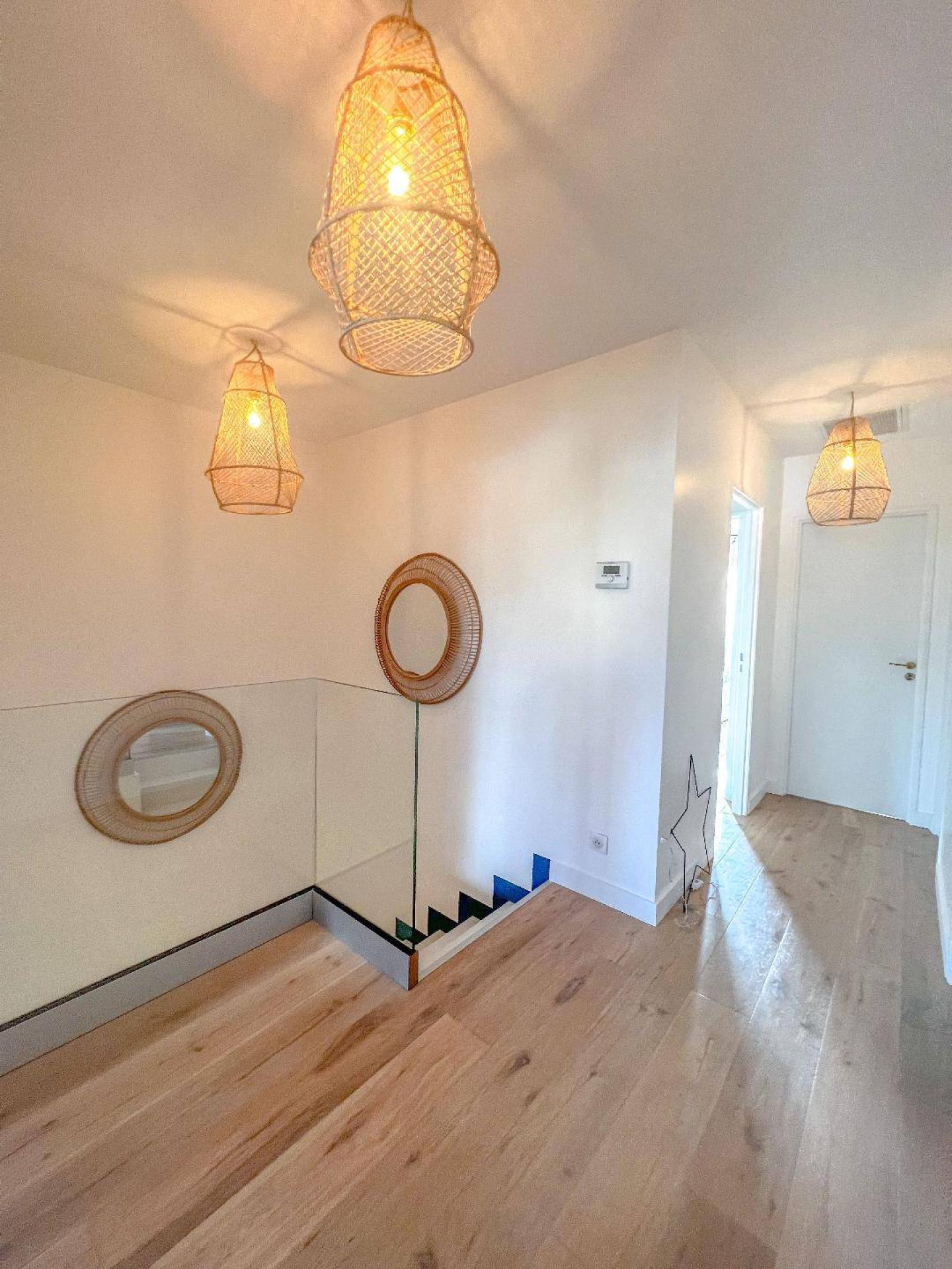 La surface habitable se compose au rez-de-chaussée d'une entrée avec placard, d'une chambre avec salle d'eau, d'une belle pièce de vie lumineuse avec cuisine semi-ouverte équipée et buanderie attenante. A l'étage un palier dessert 4 chambres climatisées dont une suite parentale (chambre, dressing, salle d'eau), ainsi qu'une salle de bain.