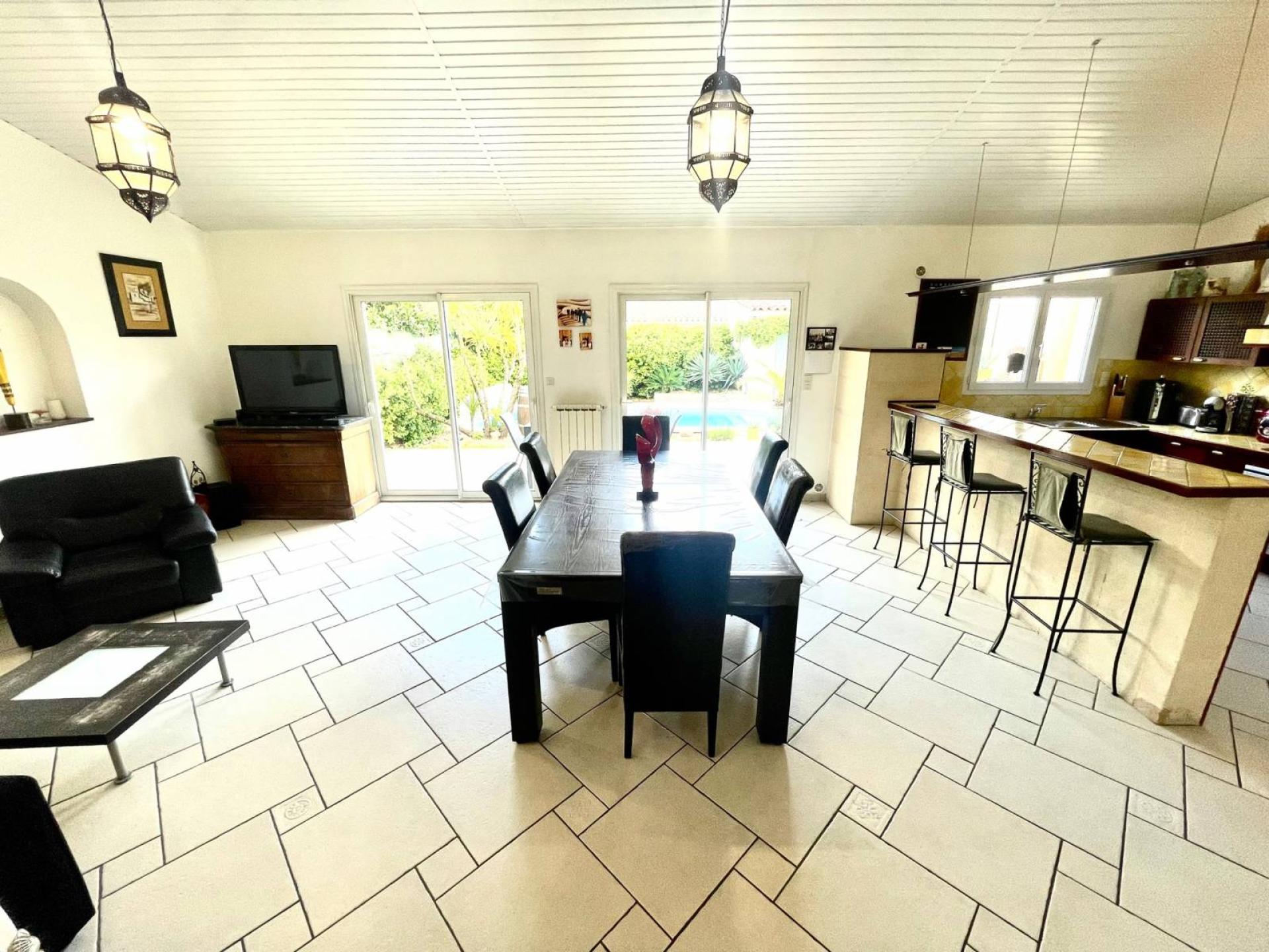 Un garage et une piscine complètent cette jolie maison où règne un esprit de vacances.