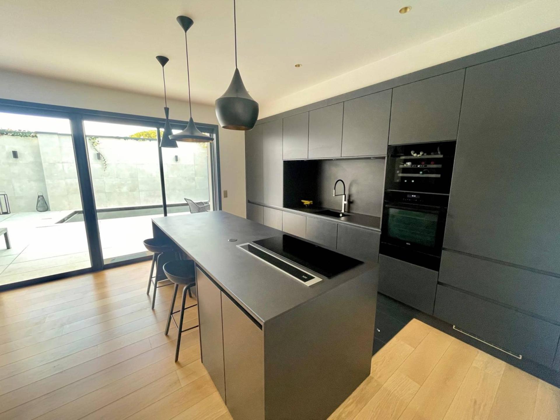 Réalisée par un cabinet d'architecte ce bien, aux prestations de qualité se compose au rez-de-chaussée d'une entrée, d'une belle pièce de vie traversante et lumineuse avec cuisine ouverte équipée donnant sur une terrasse intime avec piscine, d'une suite parentale, d'un cellier.