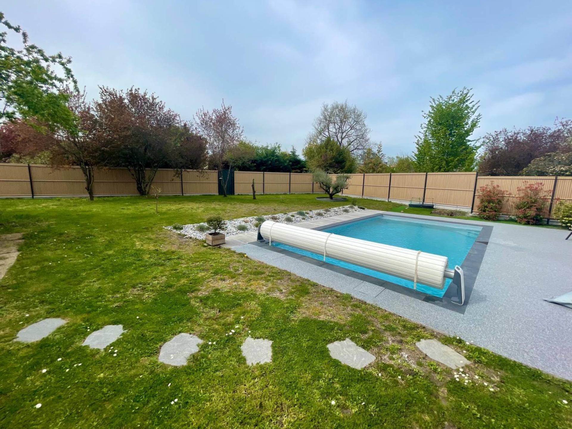 L'espace extérieur dispose d'un jardin avant, d'un jardin sur l'arrière exposé sud-ouest avec piscine chauffée sans vis-à-vis.
