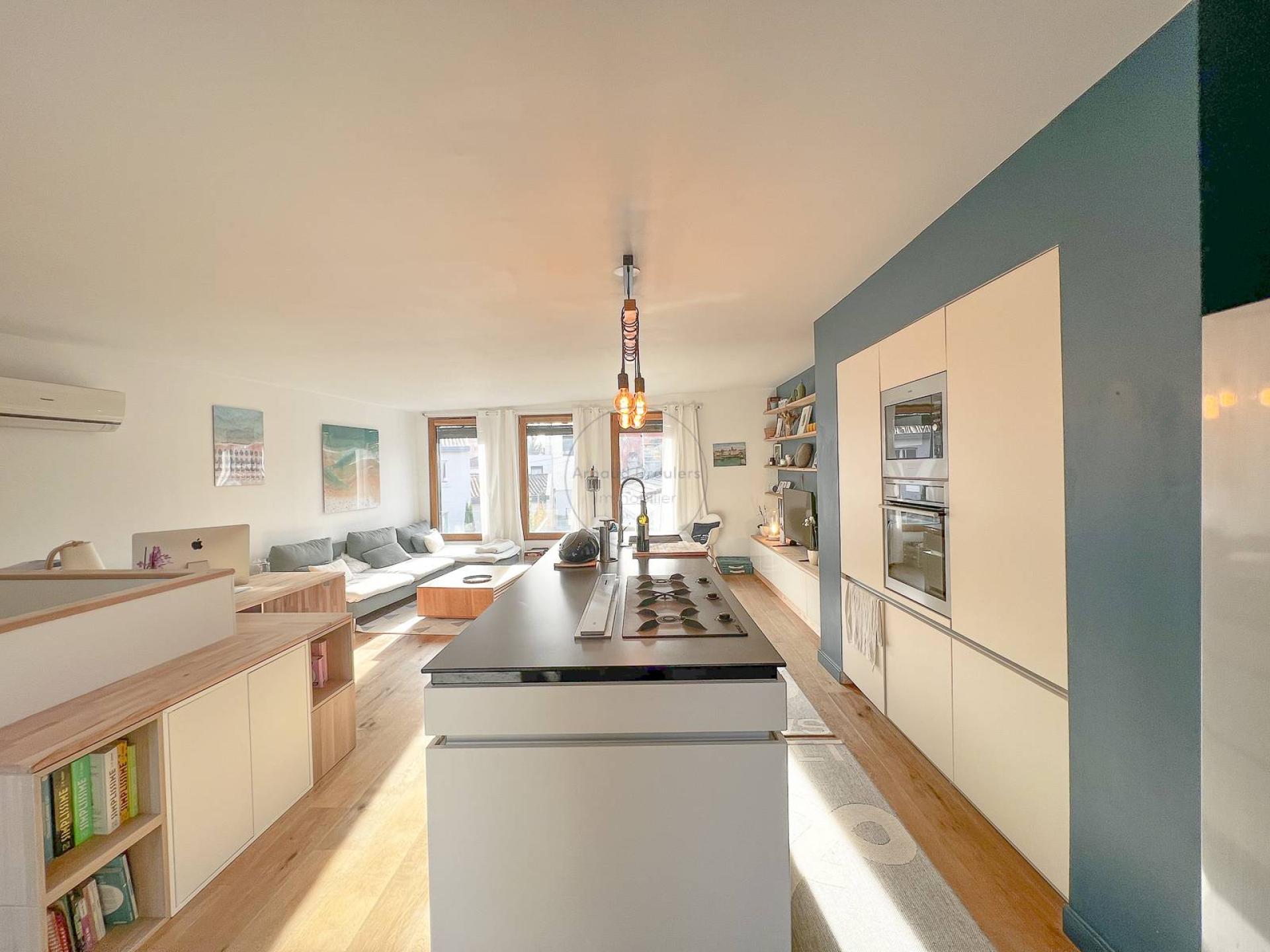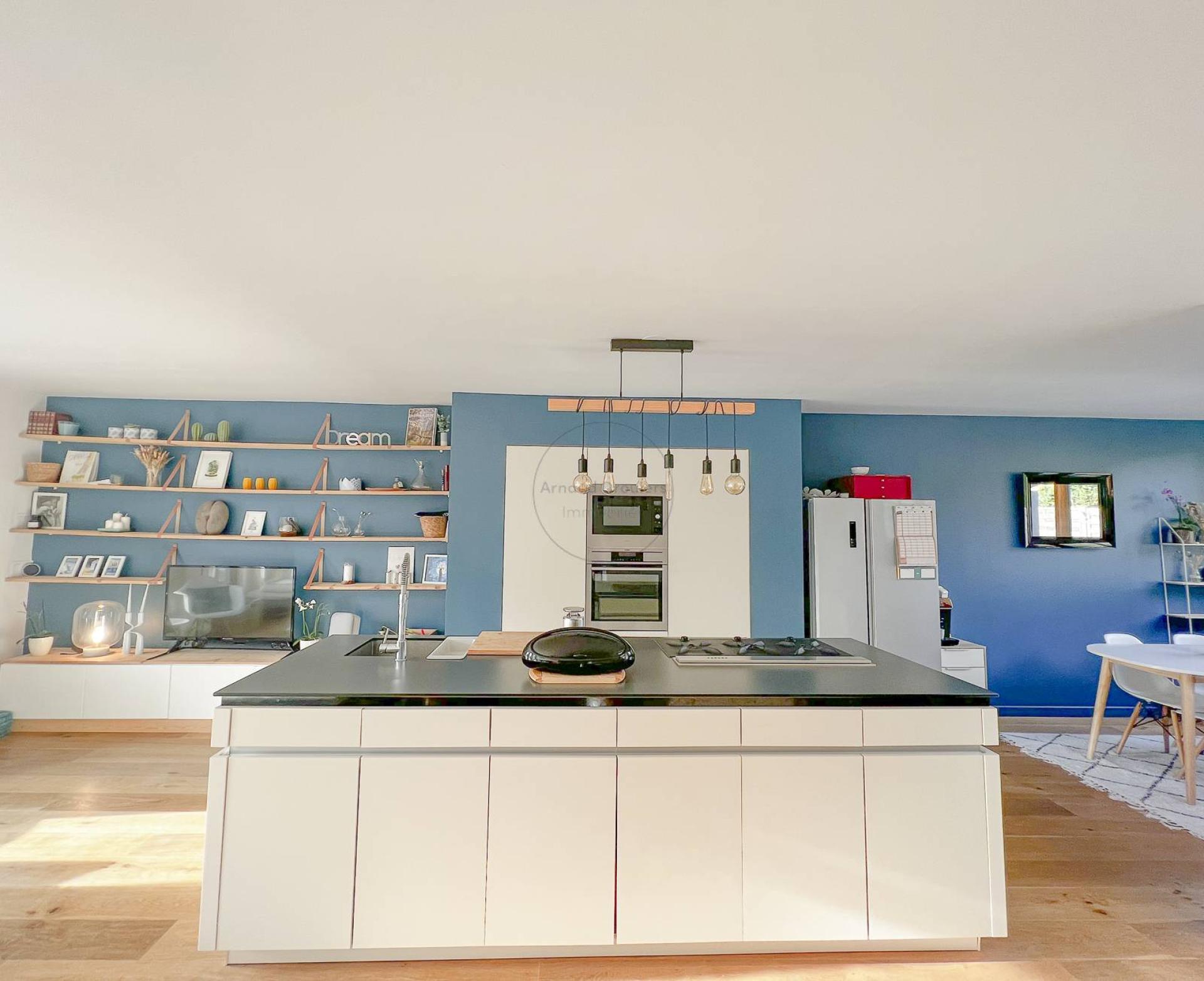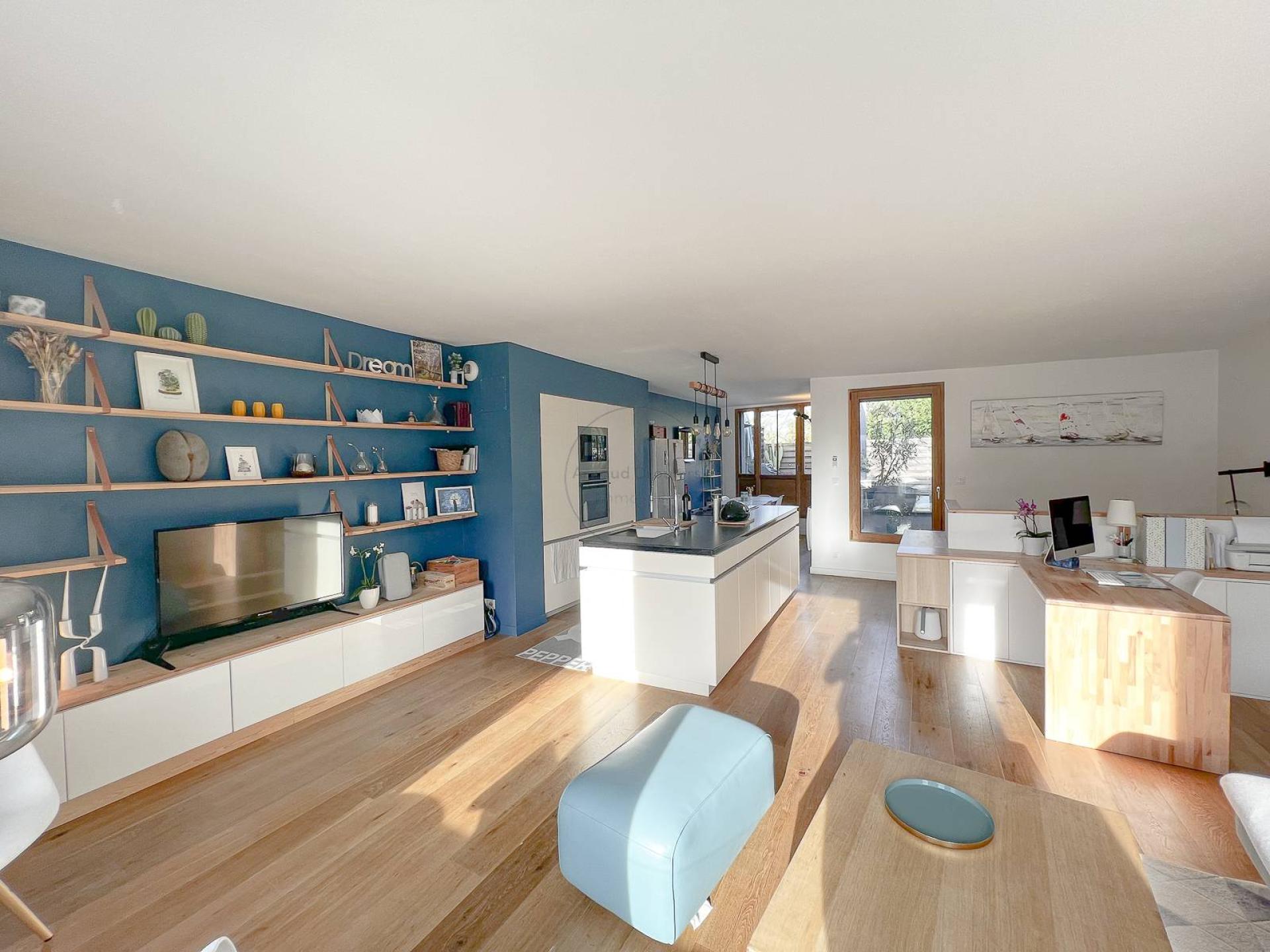 A l’étage, vous découvrirez une spacieuse et agréable pièce de vie traversante, baignée de lumière, avec salon, salle à manger, cuisine équipée, espace bureau, donnant sur une terrasse de 26m2 à l’abri des regards. Environnement calme.