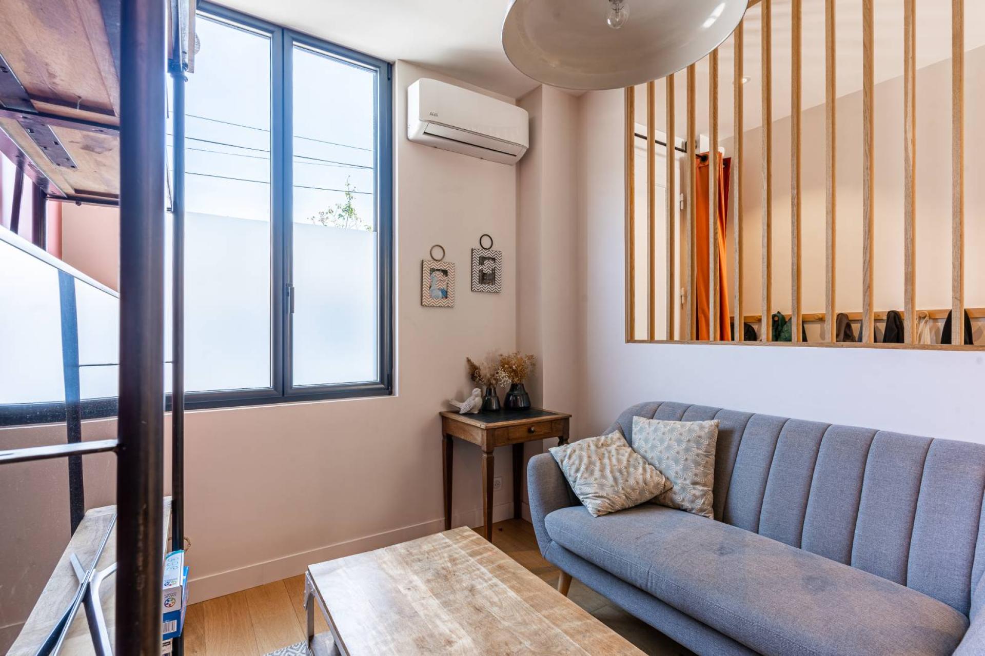 L'espace de vie s'ouvrant entièrement sur un extérieur de 145m2 composé d'une terrasse, d'un beau jardin avec piscine, le tout exposé plein sud. Aucun vis-à-vis ne vient troubler l'intimité de cet espace !